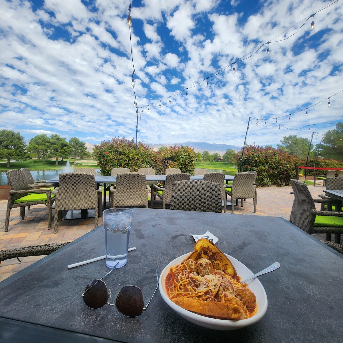 Went to Mountain Falls Grill with a friend yesterday, and we had a fantastic experience. The service was outstanding, and the food was delicious. My friend ordered the black and blue steak salad, while I opted for a refreshing side salad and the mouthwatering Irish potato chips. These fresh made chips were a homemade delight topped with nacho cheese, chicken, bacon, green onions, and accompanied by a side of sour cream. The chips were delightfully crispy and light. To conclude our meal, I savored a slice of cheesecake drizzled with chocolate syrup, while my friend indulged in the decadent chocolate cake. Overall, I thoroughly enjoyed my time at Mountain Falls Grill and still continue to support this establishment! It’s located in Mountain Falls community @ located at 5001 Clubhouse Dr, Pahrump, NV 89061